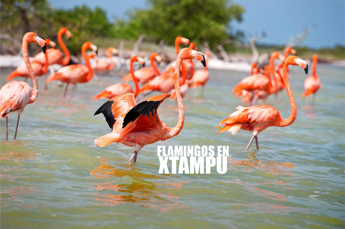 Pink ponds from Xtampu and flamingos.